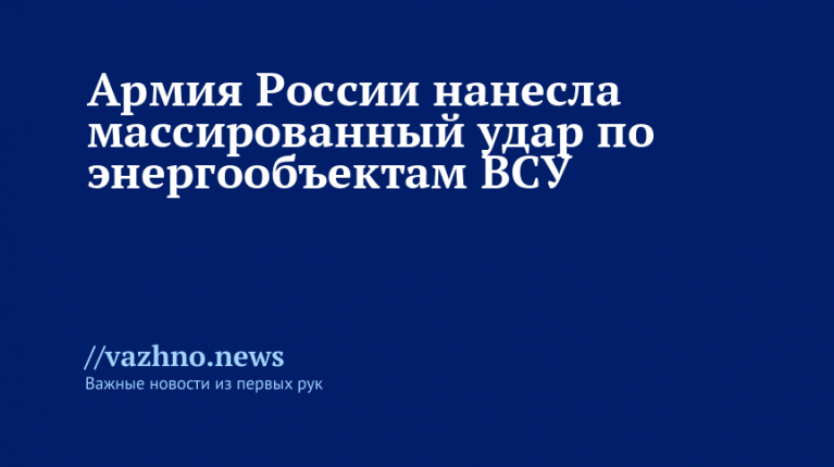 «Сегодня ночью Вооруженные Силы Российской Федерации нанесли массированный удар по энергетическим объектам, поддерживающим деятельность военно-промышленного комплекса Украины», — говорится в Telegram-канале российского военного ведомства.