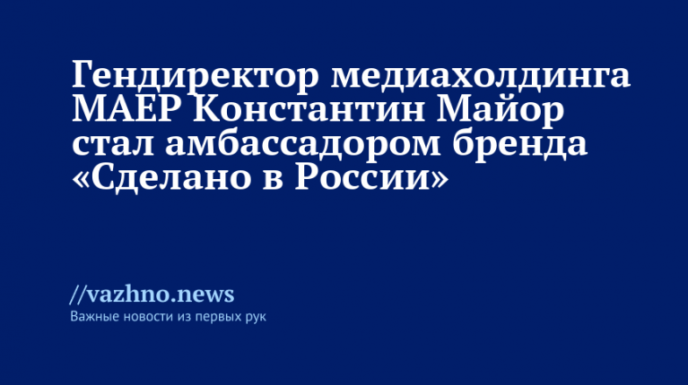 «Для меня, как руководителя МАЕР, получить статус амбассадора бренда „Сделано в России“ — это не просто большая честь, а логичное продолжение нашей миссии по созданию позитивного имиджа страны и отечественного бизнеса. Мы уверены, что при помощи наших ресурсов и профессионального опыта в медиапространстве сможем донести миру, что российская продукция и услуги являются синонимом качества, инноваций и надежности. Это отличная возможность объединить силы с РЭЦ и представить миру лучший образ России», — заявил генеральный директор медиахолдинга МАЕР Константин Майор.