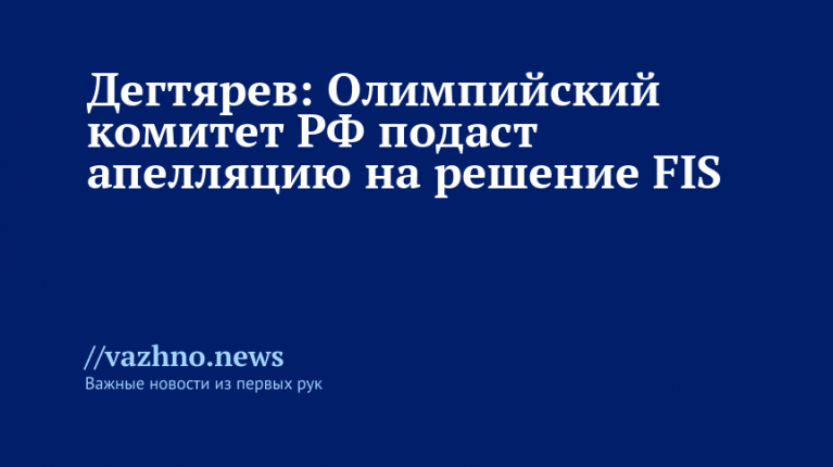 Олимпийский комитет России совместно с лыжными федерациями намерен подать апелляцию на решение Международной федерации лыжного спорта и сноуборда (FIS) о неразрешении участия российских спортсменов в соревнованиях. Об этом заявил 22 октября министр спорта РФ и председатель Олимпийского комитета Михаил Дегтярев.