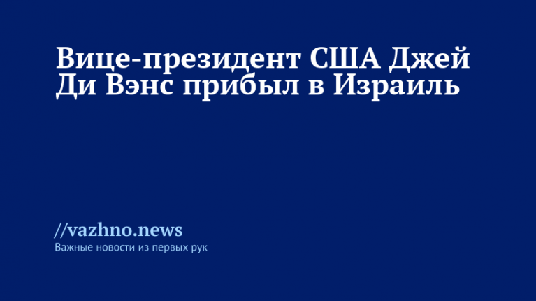 Вице-президент США Джей Ди Вэнс прибыл с визитом в Израиль