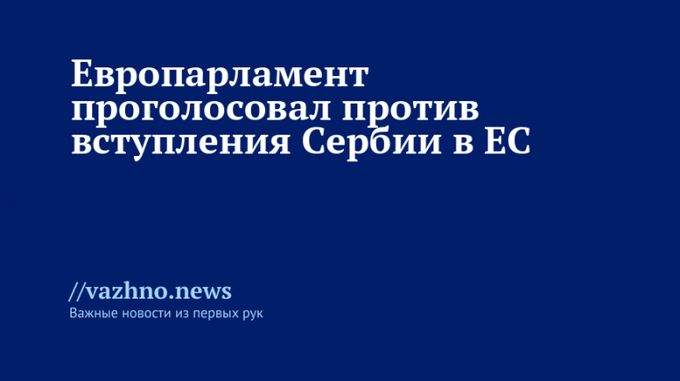 В среду, 22 октября, Европарламент (ЕП) на пленарном заседании выразил отказ от поддержки вступления Сербии в Евросоюз (ЕС). Об этом сообщается в резолюции, опубликованной на официальном сайте ЕП.