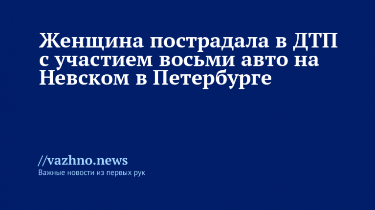 В Санкт-Петербурге произошло массовое столкновение восьми автомобилей на одном из перекрестков Невского проспекта. Об этом сообщается в Telegram-канале ГУ МВД России по Петербургу и Ленинградской области. В аварии пострадала женщина.