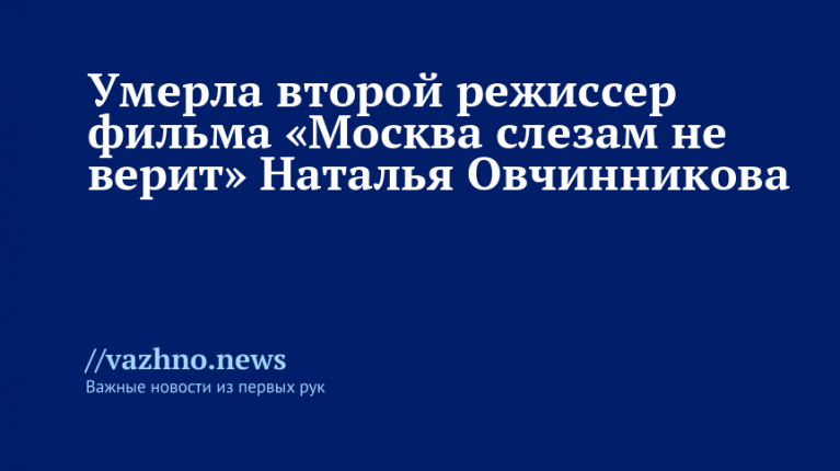 «На 76-м году жизни ушла из жизни наша коллега и друг, член Союза кинематографистов России, второй режиссер Наталья Михайловна Овчинникова», — отмечается в Telegram-канале организации.