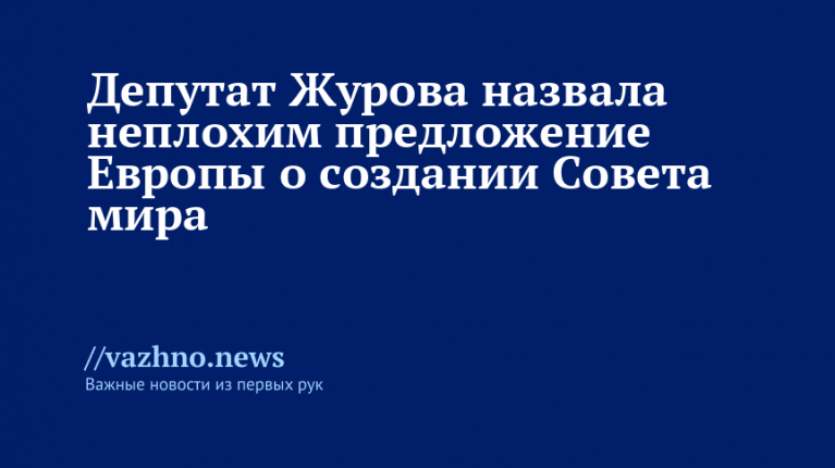Депутат Государственной Думы Светлана Журова высказала свое мнение о предложении из Европы создать Совет мира под руководством президента США Дональда Трампа. По ее словам, этот орган может оказаться эффективным инструментом для разрешения конфликта на Украине.