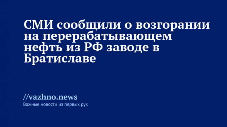 В материале говорится: «Произошел пожар на Братиславском нефтеперерабатывающем заводе, который принадлежит венгерской компании MOL Group. Этот завод перерабатывает российскую нефть, поставляемую по трубопроводу «Дружба»».