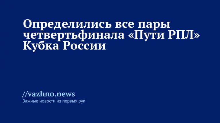 Раскрыты пары четвертьфинала Кубка России с матчами от 4 до 27 ноября
