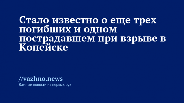 Губернатор Челябинской области Алексей Текслер вечером накануне выступил с заявлением, что в результате взрыва на предприятии в Копейске погибло четыре человека. Позже стало известно о пяти пострадавших в происшествии. По информации источника «Известий», предварительной причиной взрыва могли стать нарушения в соблюдении техники безопасности.