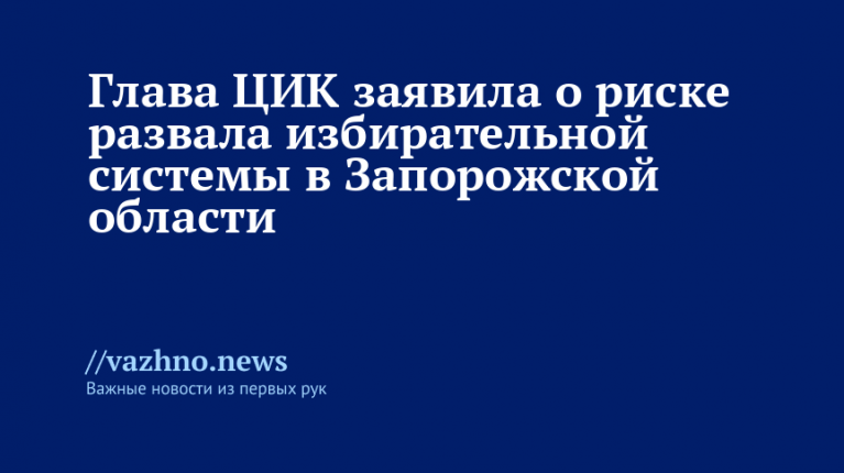 Руководитель Центральной избирательной комиссии (ЦИК) Элла Памфилова направила предупреждающую телеграмму в адрес Законодательного собрания Запорожской области с требованием не вносить изменения в избирательное законодательство, которые способны привести к разрушению избирательной системы. Об этом было объявлено 22 октября в пресс-службе ЦИК России.