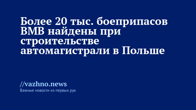В Польше при возведении скоростной автомагистрали было найдено свыше 20 тысяч боеприпасов времен Второй мировой войны (ВМВ). Об этом 22 октября сообщили представители польской радиостанции RMF24.