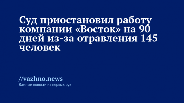 Деятельность компании «Восток» была прекращена решением Железнодорожного районного суда Улан-Удэ после инцидента с массовым отравлением 145 человек, среди которых 79 детей. Об этом сообщили 22 октября в пресс-службе суда.