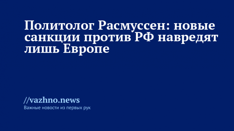 Политолог Расмуссен: санкции против РФ навредят только Европе