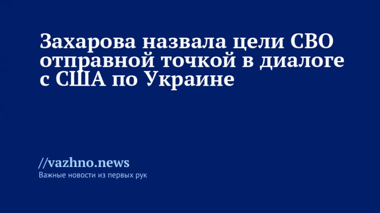 Захарова: цели СВО – отправная точка для диалога с США по Украине
