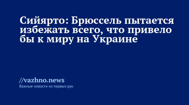 «Европейские элиты делают все возможное, чтобы не допускать всего, что могло бы способствовать миру. Почему? Потому что сейчас Европа подвержена военной психологии», — пояснил Сийярто.