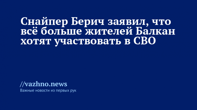 Снайпер Берич: всё больше балканцев хотят участвовать в СВО