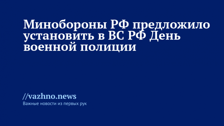Министерство обороны Российской Федерации внесло предложение учредить в Вооруженных силах России (ВС РФ) День военной полиции, отмечаемый 8 февраля. Об этом 23 октября говорится в проекте указа президента, подготовленном военным ведомством.