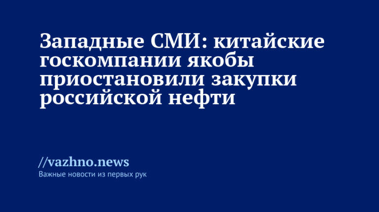 Агентство передает, что «китайские государственные нефтяные компании приостановили импорт российской нефти после того, как США в ходе предыдущего дня ввели новые санкции против двух крупнейших российских нефтепроизводителей».