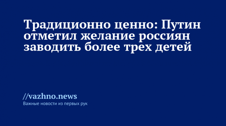 — Социологи отмечают, что сейчас всё больше россиян хотят многодетные семьи. Если в 2005 году среднее число желаемых детей составляло 2,4, теперь — свыше трёх. Это важная тенденция, — отметил Владимир Путин.