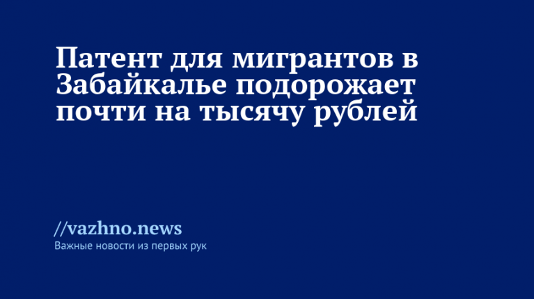 В Забайкальском крае с 2026 года планируется увеличить стоимость трудового патента для иностранных граждан почти на тысячу рублей. Теперь патент будет стоить 14 тыс. рублей в месяц, тогда как в 2025 году его цена составит 13 385 рублей.