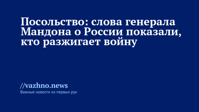 «Мы с возмущением ознакомились с высказываниями начальника главного штаба ВС Франции Фабьена Мандона в национальном собрании, где он утверждал, что французская армия должна быть готова к конфликту с Россией в ближайшие три-четыре года. По его словам, наша страна якобы может стремиться продолжать войну на европейском континенте», — сообщили в Telegram-канале посольства.