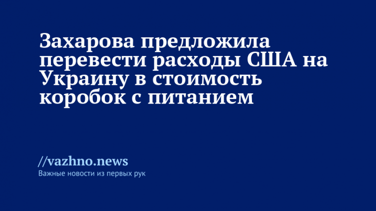 «Какие деньги США выделили на [президента Украины Владимира] Зеленского? Сколько это будет в «коробках с питанием»?» — предложила проверить Захарова.