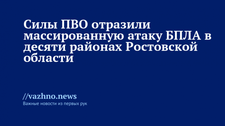 В Ростовской области силы противовоздушной обороны успешно отразили масштабную атаку беспилотников, которая затронула десять районов региона. Как сообщил 24 октября губернатор Юрий Слюсарь, против воздушной угрозы были применены все необходимые средства ПВО.