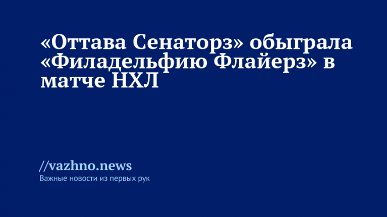 Хоккейный клуб (ХК) «Оттава Сенаторз» одержал победу над командой «Филадельфия Флайерз» в поединке регулярного сезона Национальной хоккейной лиги (НХЛ). Матч прошел 24 октября и закончился с результатом 2:1.