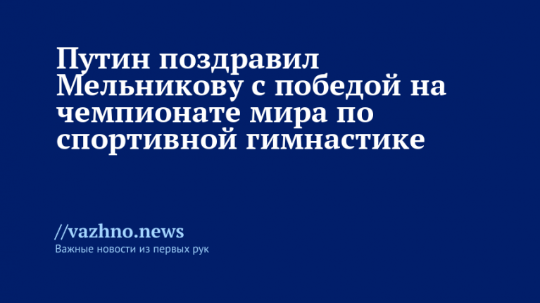 Президент России Владимир Путин в пятницу, 24 октября, поздравил российскую гимнастку Ангелину Мельникову с триумфом на чемпионате мира по спортивной гимнастике, который состоялся в Индонезии.