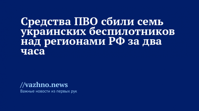 «С 8:00 до 10:00 по московскому времени дежурные средства ПВО уничтожили семь украинских беспилотных летательных самолетного типа», — указано в Telegram-канале ведомства.