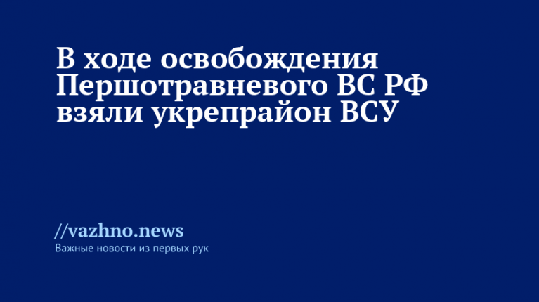 ВС РФ взяли укрепрайон ВСУ при освобождении Першотравневого