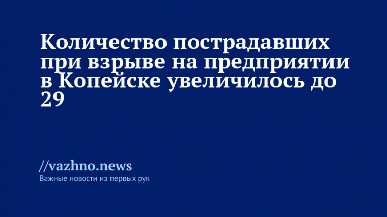 Число пострадавших после взрыва на одном из предприятий Копейска возросло до 29 человек. Об этом 24 октября рассказал губернатор Челябинской области Алексей Текслер.
