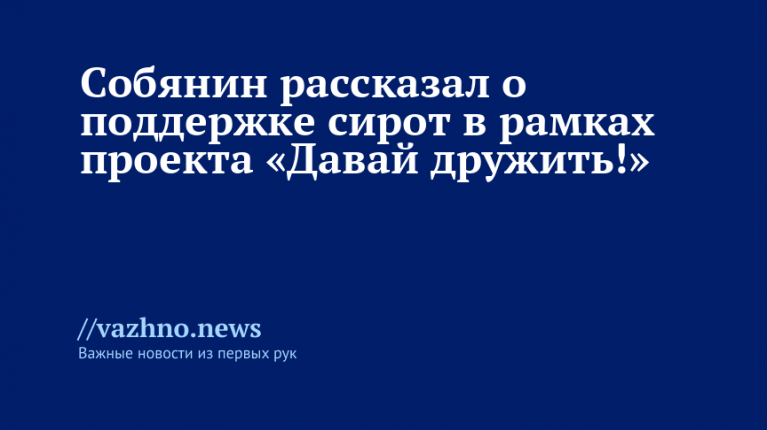 Проект социальной поддержки «Давай дружить!» за пятилетний период работы стал значимой опорой для сирот и детей из неблагополучных семей. Такое заявление мэр Москвы Сергей Собянин сделал в своем канале на МАХ.