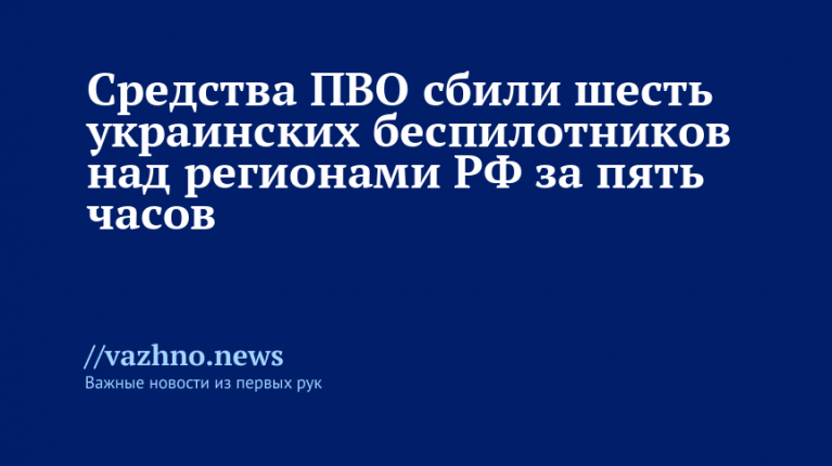 Силы противовоздушной обороны (ПВО) уничтожили шесть беспилотников Вооруженных сил Украины в течение пяти часов над различными регионами России. Об этом 24 октября информировали в Минобороны РФ.