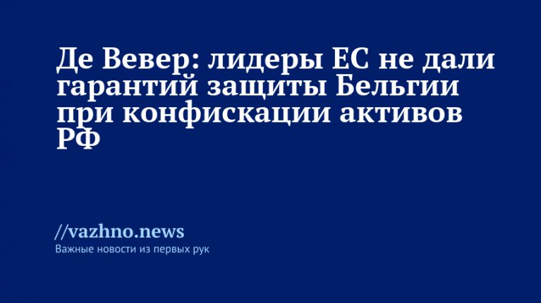 Де Вевер: лидеры ЕС не гарантировали защиту Бельгии при конфискации РФ