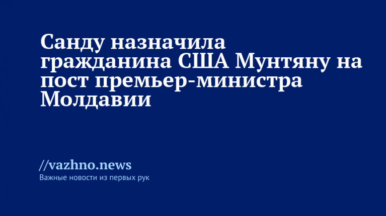 Президент Молдавии Майя Санду подписала указ о назначении Александра Мунтяну, гражданина США, на пост премьера страны. Об этом 24 октября она объявила через свой аккаунт в Instagram (платформа принадлежит Meta, деятельность которой в России признана экстремистской и запрещена).