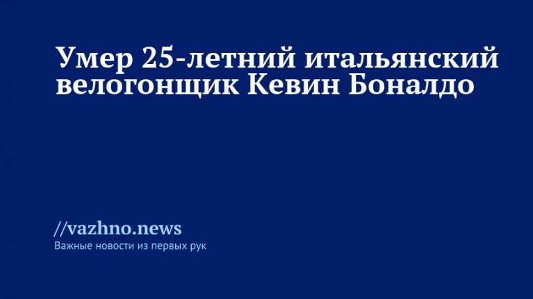 Итальянский велосипедист команды Sc Padovani Polo Cherry Bank Кевин Боналдо скончался в возрасте 25 лет в больнице города Виченца. Об этом 24 октября сообщается на официальном сайте команды.
