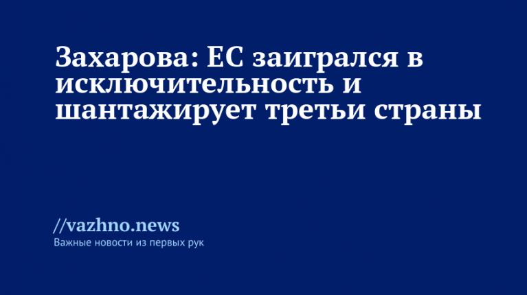 «Заигравшись в собственную исключительность, ЕС шантажирует всё большее число третьих стран распространением "вторичных" санкций. Тем самым прямо заявляет, что считает себя вправе диктовать собственные условия торгово-экономического сотрудничества между суверенными государствами», — подчеркнула Захарова, ее слова опубликованы на официальном сайте МИД России.