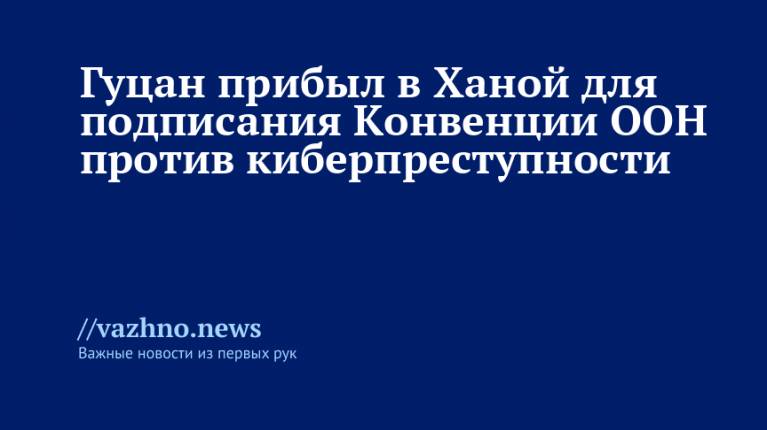 Генеральный прокурор России Александр Гуцан прибыл в Ханой, чтобы принять участие в церемонии подписания Конвенции ООН по борьбе с киберпреступностью. Об этом 24 октября сообщается на официальном сайте Генпрокуратуры России.