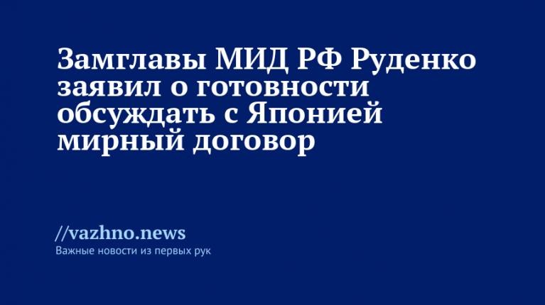 Заместитель министра иностранных дел России Андрей Руденко заявил «Известиям», что РФ готова вести переговоры со сформированным правительством Японии по всем важным вопросам двустороннего сотрудничества, однако при условии изменения негативной политики со стороны Токио.