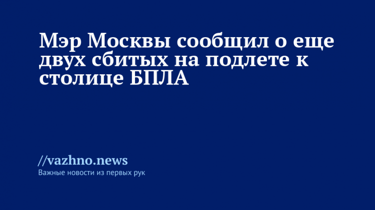 В тот же день Собянин сообщил об уничтожении третьего БПЛА, который также направлялся на столицу. До этого силы ПВО сбили еще один летевший на Москву дрон.