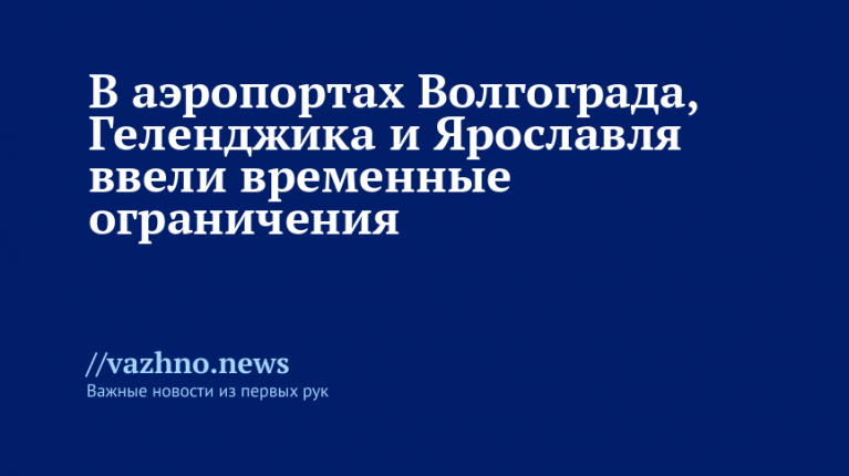 «В аэропортах Волгоград, Геленджик и Ярославль (Туношна) введены временные ограничения на прием и выпуск воздушных судов», — написал он в своем Telegram-канале.