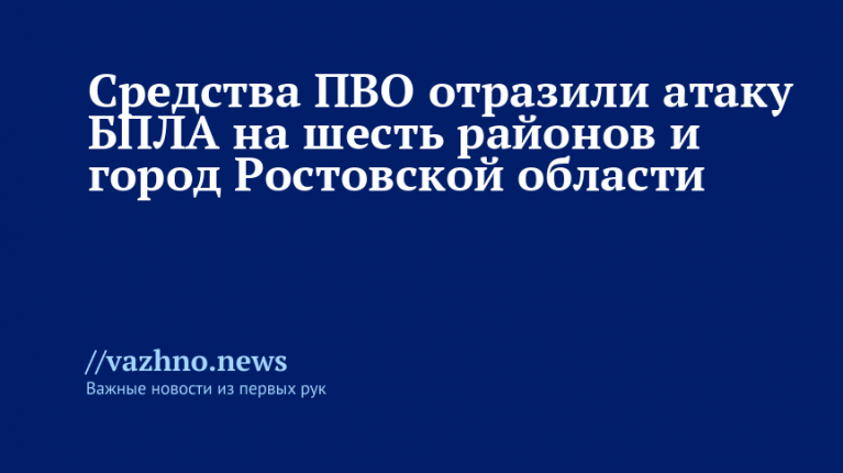 «В ночное время силы ПВО в Ростовской области отразили воздушное нападение противника, уничтожив и перехватив БПЛА в Донецке, а также в Куйбышевском, Кашарском, Тарасовском, Чертковском, Миллеровском и Шолоховском районах», — написал он в собственном Telegram-канале.