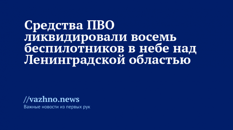 Силы противовоздушной обороны (ПВО) ликвидировали восемь беспилотных летательных аппаратов (БПЛА) в воздушном пространстве Ленинградской области. Сообщение об этом 25 октября опубликовал губернатор региона Александр Дрозденко.