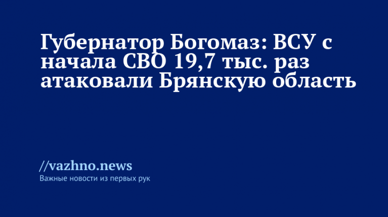 Глава региона подчеркнул, что только в первые девять месяцев текущего года ВСУ осуществили более 14,2 тысяч ударов по Брянской области.
