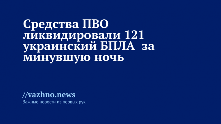 Минувшей ночью средства противовоздушной обороны (ПВО) уничтожили 121 беспилотный летательный аппарат (БПЛА) Вооруженных сил Украины (ВСУ). Об этом 25 октября сообщили в Министерстве обороны Российской Федерации.
