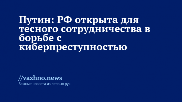 По словам российского лидера, Россия готова к активному международному сотрудничеству в области борьбы с киберпреступностью.