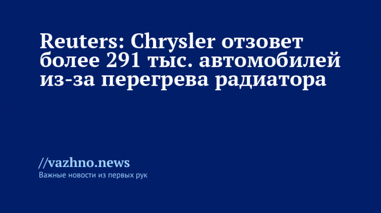 В публикации отмечается: «Chrysler отзывает 291,6 тысячи автомобилей в США из-за угрозы перегрева электрической цепи вентилятора радиатора».