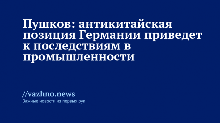 «Причина ясна: антикитайская позиция Германии. Это повлечет за собой серьезные последствия для немецкого машиностроения, прежде всего для автомобильной отрасли, которая в ближайшем времени перестанет получать из Китая необходимые микрочипы», — отметил он в своем Telegram-канале.