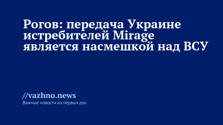 Передача Киеву старых французских истребителей Mirage воспринимается как издевательство над Вооруженными силами Украины (ВСУ). Об этом 25 октября заявил председатель комиссии Общественной палаты (ОП) РФ по вопросам суверенитета, сопредседатель координационного совета по интеграции новых регионов Владимир Рогов.