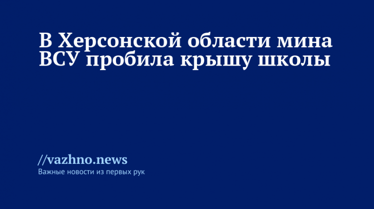 В Каховке Херсонской области в результате обстрела Вооруженными силами Украины (ВСУ) была пробита мина, которая повредила крышу местной школы. Об этом 25 октября рассказал глава муниципального округа Каховка Павел Филипчук.