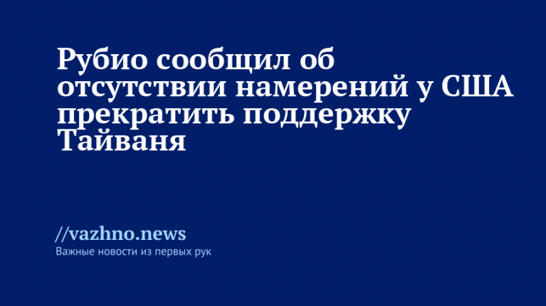 США не планируют прекращать поддержку Тайваня ради заключения торгового соглашения с Китаем. Об этом 25 октября сообщил американский госсекретарь Марко Рубио.